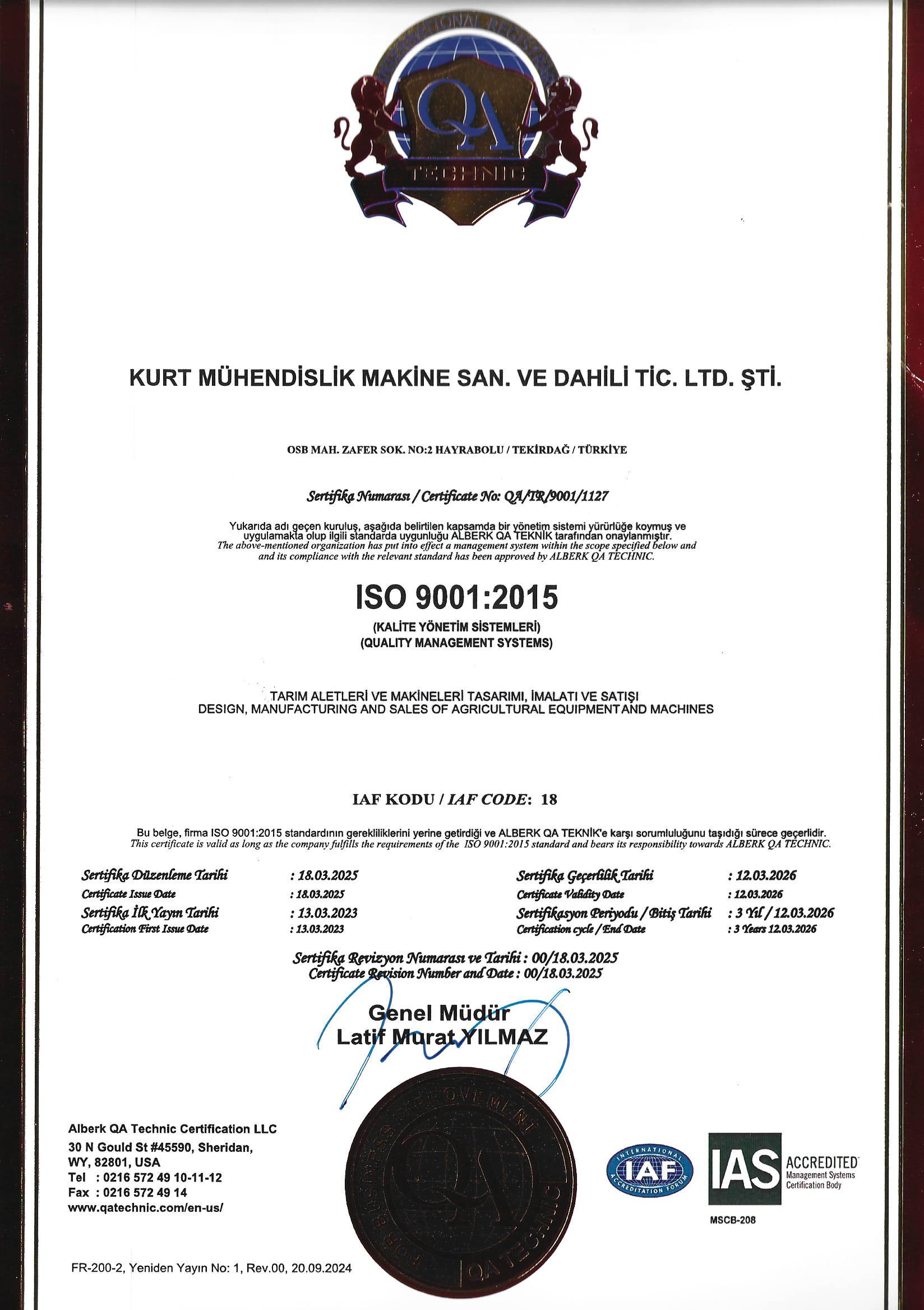 Kurt Mühendislik olarak kalite; müşterilerimizin üründen ve hizmetten beklediği performansın fiyat, maliyet, zaman, satış öncesi ve sonrası hizmetler gibi bileşenler açısından en üst düzeyde karşılanması ve tatminidir. Bunun için;