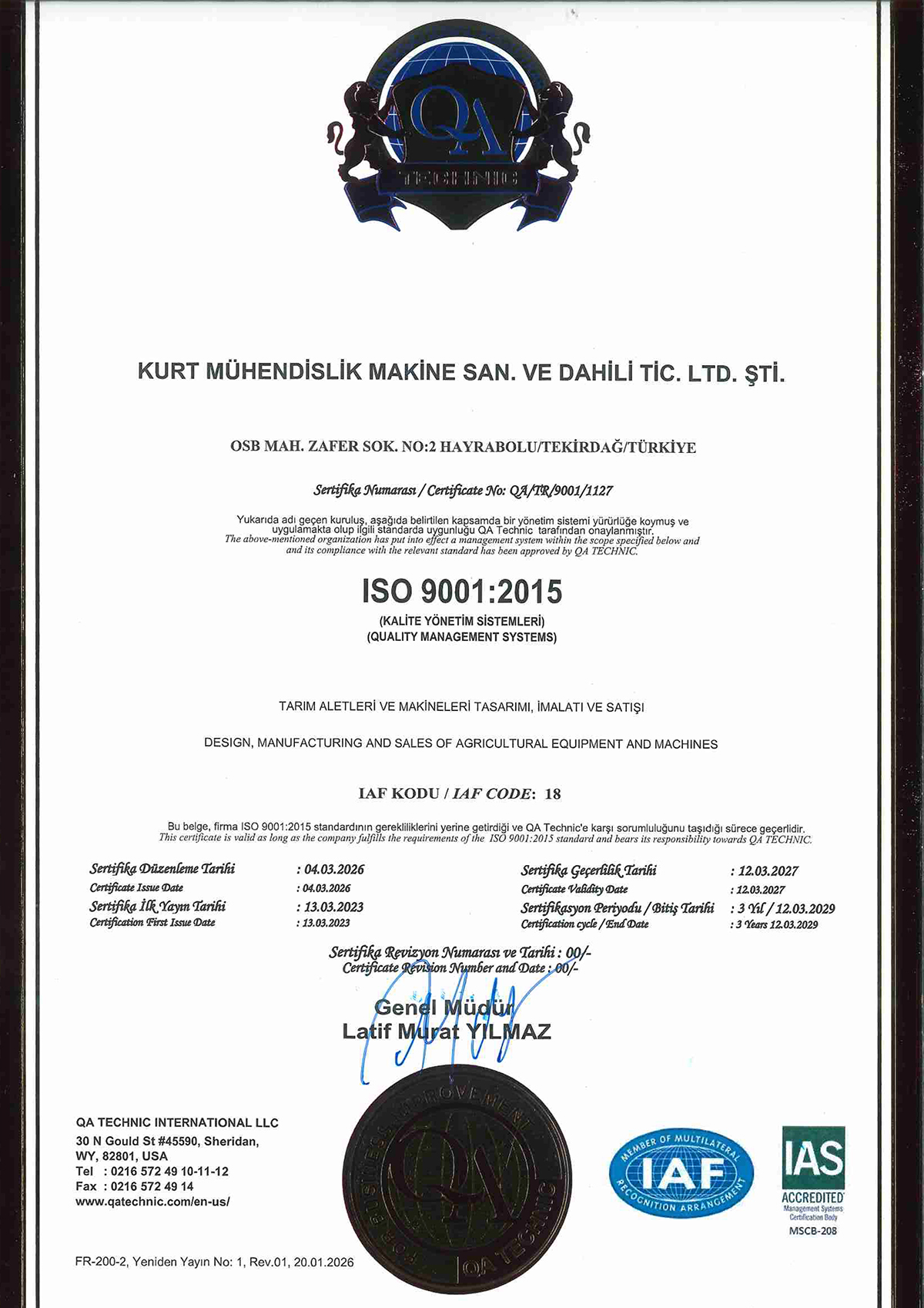 Kurt Mühendislik olarak kalite; müşterilerimizin üründen ve hizmetten beklediği performansın fiyat, maliyet, zaman, satış öncesi ve sonrası hizmetler gibi bileşenler açısından en üst düzeyde karşılanması ve tatminidir. Bunun için;